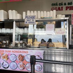 A pretty underrated spot for dim sum! It's an unsuspected food-to-go spot near the corner of Bolsa and Brookhurst, and you'll probably pass it a few times. Inside, there's around 3 small tables, and a large steam table, just like most other small bakeries and delis. The service is quite fast with the workers helping you right away and grabbing the items, whether you're togo or dining in. Personally, my favorites were the siu mai and the fried dumplings, which were filled with a good amount of meat, and had a great flavor. It wasn't the best dim sum, unlike what you'll find in the 626, but it's passable, and a good choice for a little morning pick-me-up